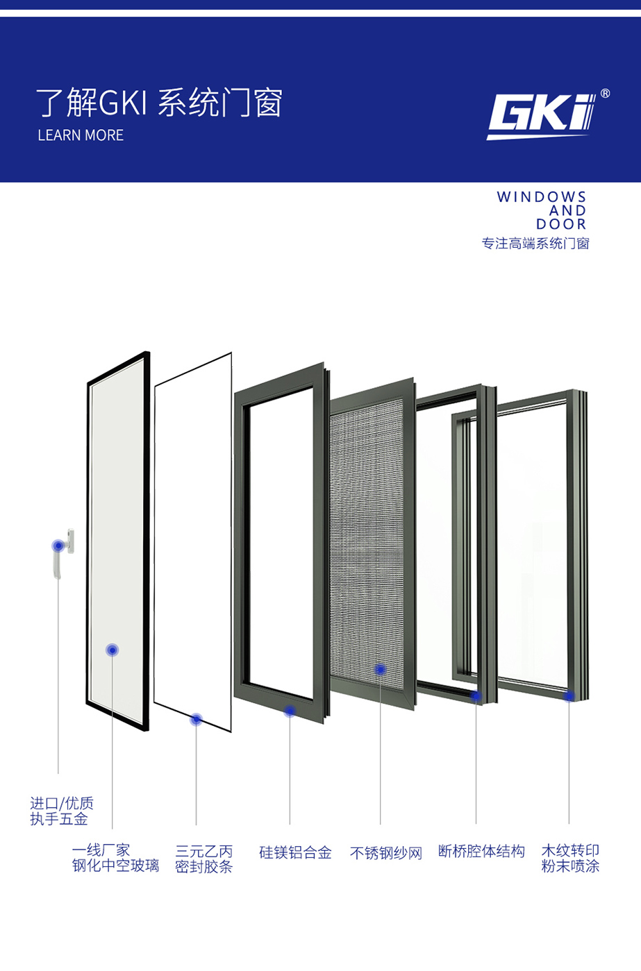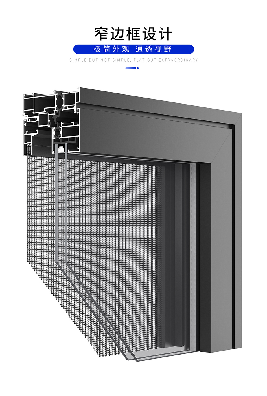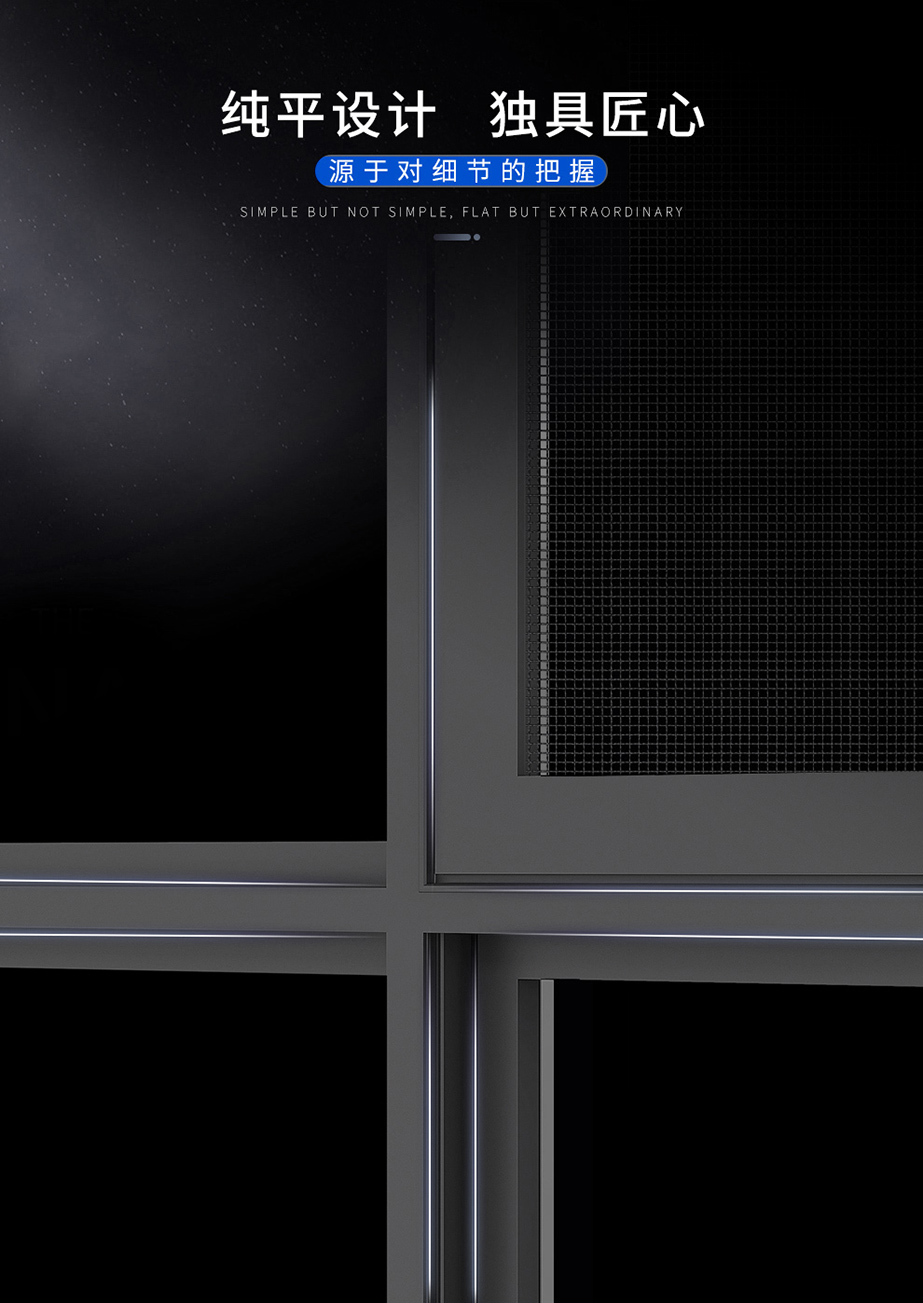 鋁鎂合金、系統(tǒng)窗結(jié)構(gòu)設(shè)計(jì)/多腔體靜音腔 / 隔熱、保溫、靜音/高品質(zhì)進(jìn)口五金配件/注膠工藝/隱藏排水 氣密性水密性強(qiáng)/窗紗一體結(jié)構(gòu),防蚊防盜/可增配防護(hù)欄/選配進(jìn)口五金配件執(zhí)手、鉸鏈,保障產(chǎn)品性能