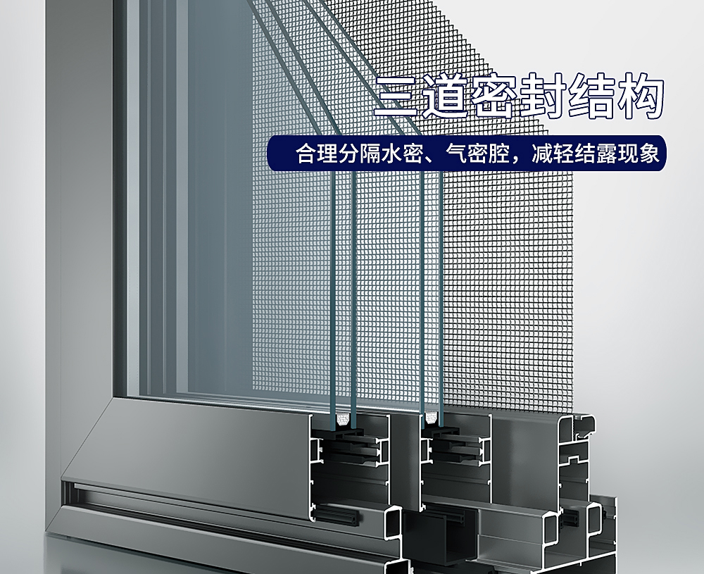 三道密封設(shè)計(jì),采用優(yōu)質(zhì)的密封膠條,細(xì)微之處做到了極致,結(jié)構(gòu)拼接部位采用注膠工藝處理,達(dá)到整窗無縫從而有效阻隔雨水通過室外風(fēng)壓的作用進(jìn)入室內(nèi)。自由研發(fā)專利設(shè)計(jì)的排水口,排水通暢,還能有效的防止雨水的倒灌,保持室內(nèi)的干燥環(huán)境。