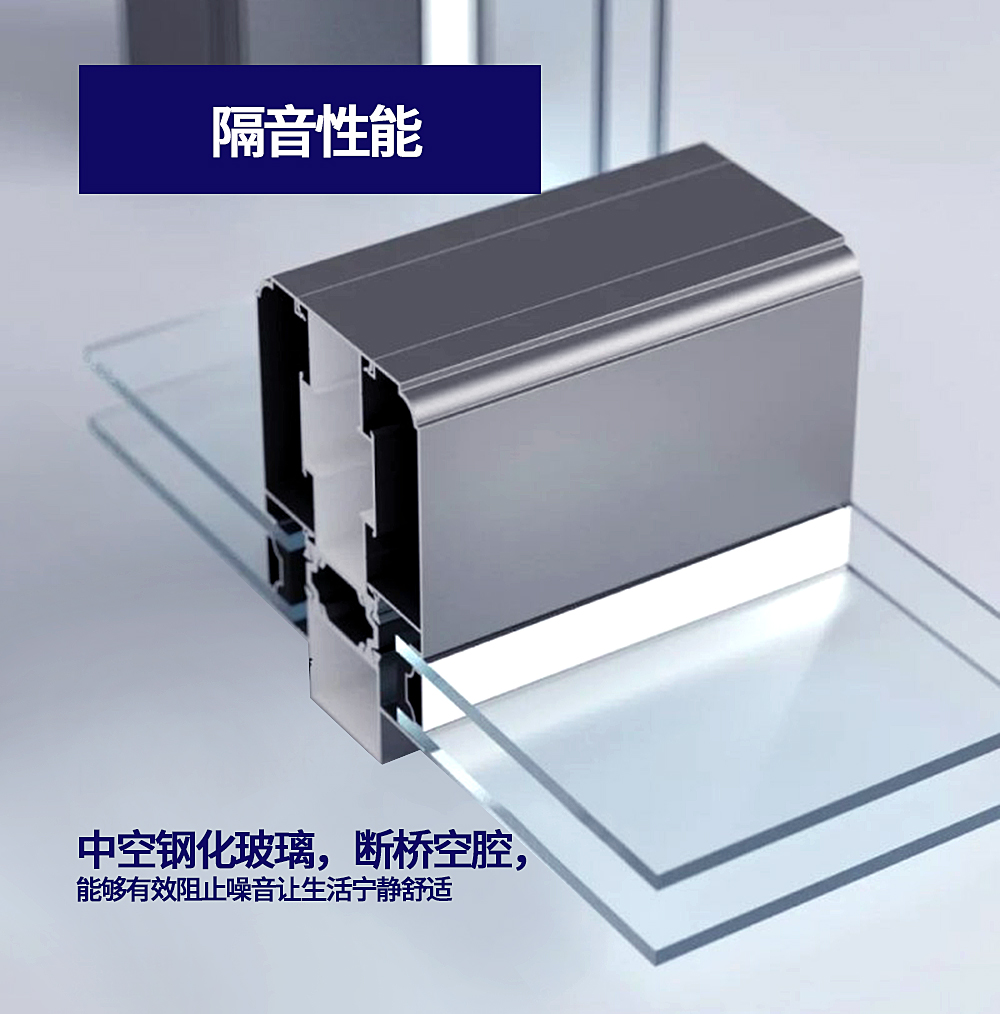 中空鋼化玻璃,斷橋空腔,玻璃與邊框的四周空間,均填充有隔音隔熱棉,隔音棉,能夠有效阻止噪音讓生活寧靜舒適。